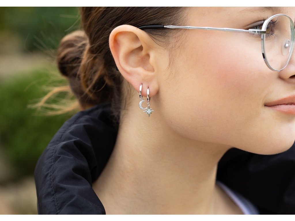 Díky bezpečnostnímu zapínání na kloub se náušnice pohodlně nosí a chrání před ztrátou šperku. Hravý motiv hvězdy a měsíce s třpytivými zirkony vytváří šperk, který oživí každý outfit, vhodný jak pro ženy, tak pro dívky, a dokonale podtrhne osobitý styl a půvab.