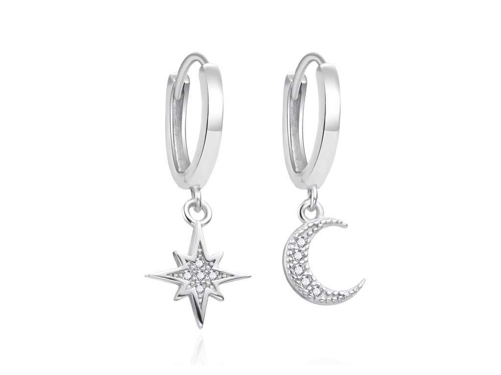 Stříbrné kruhové náušnice s hvězdou a měsícem AGT-E138KW