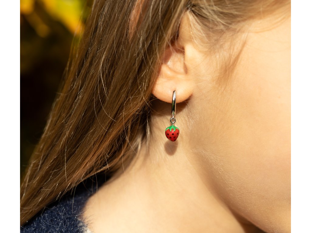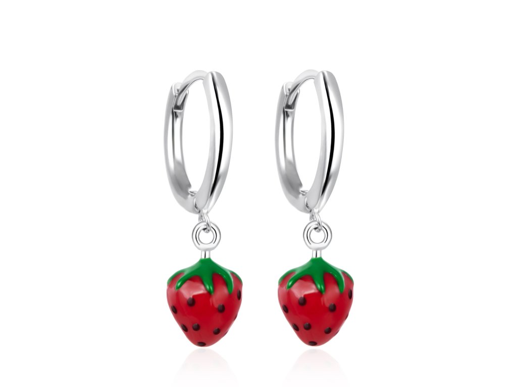 Stříbrné kruhové náušnice s jahůdkou AGT-ED020K