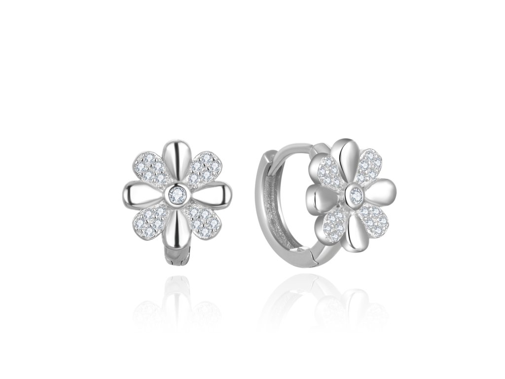 Stříbrné kruhové náušnice s květinou AGUP2621