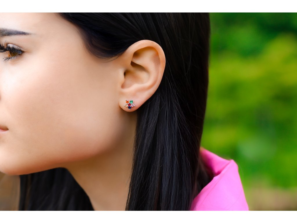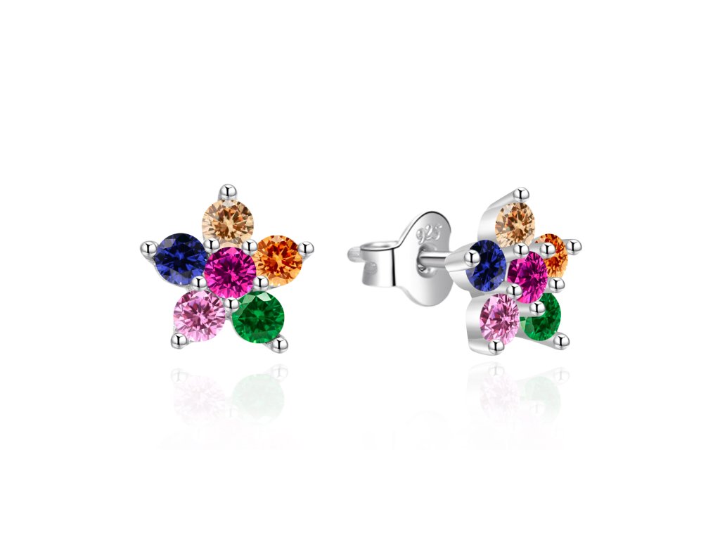 Stříbrné kytičkové náušnice s barevnými zirkony AGT-E172PC