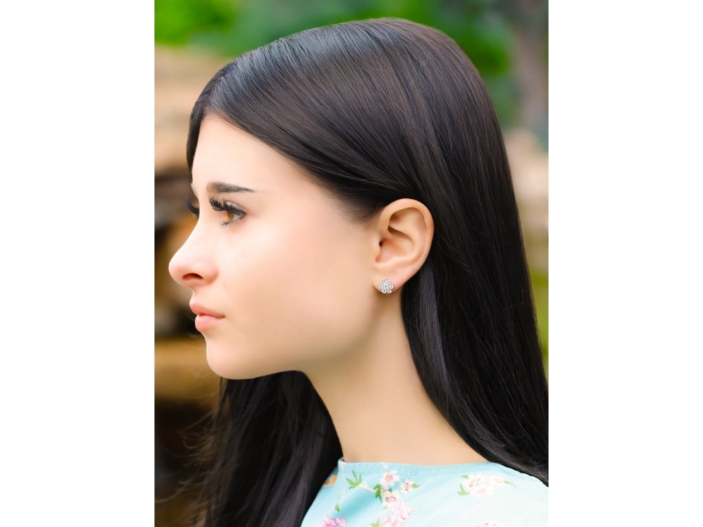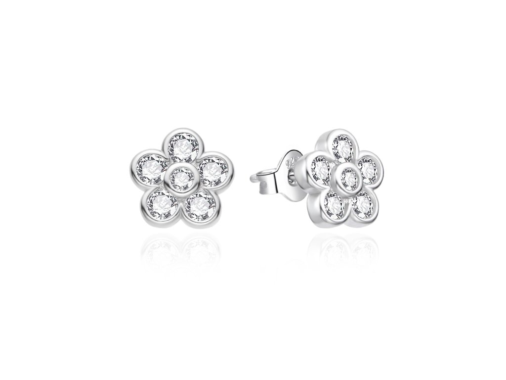 Stříbrné kytičkové náušnice s čirými zirkony AGT-E257PW