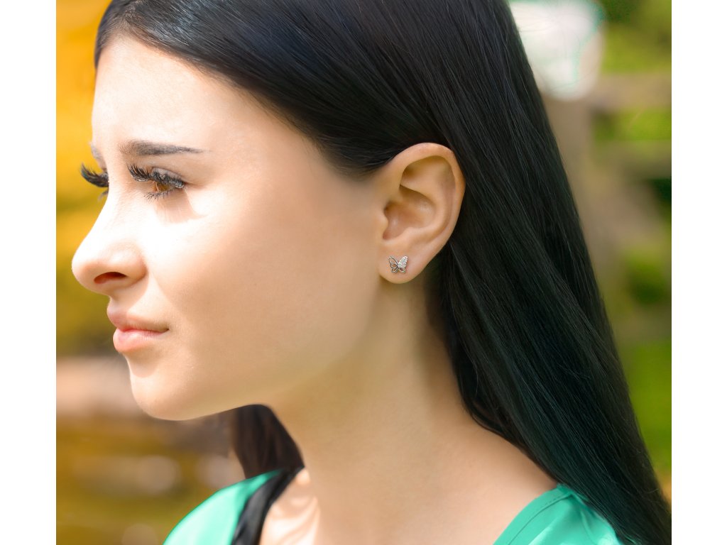 Stříbrné motýlkové náušnice se zirkony AGT-E212PW