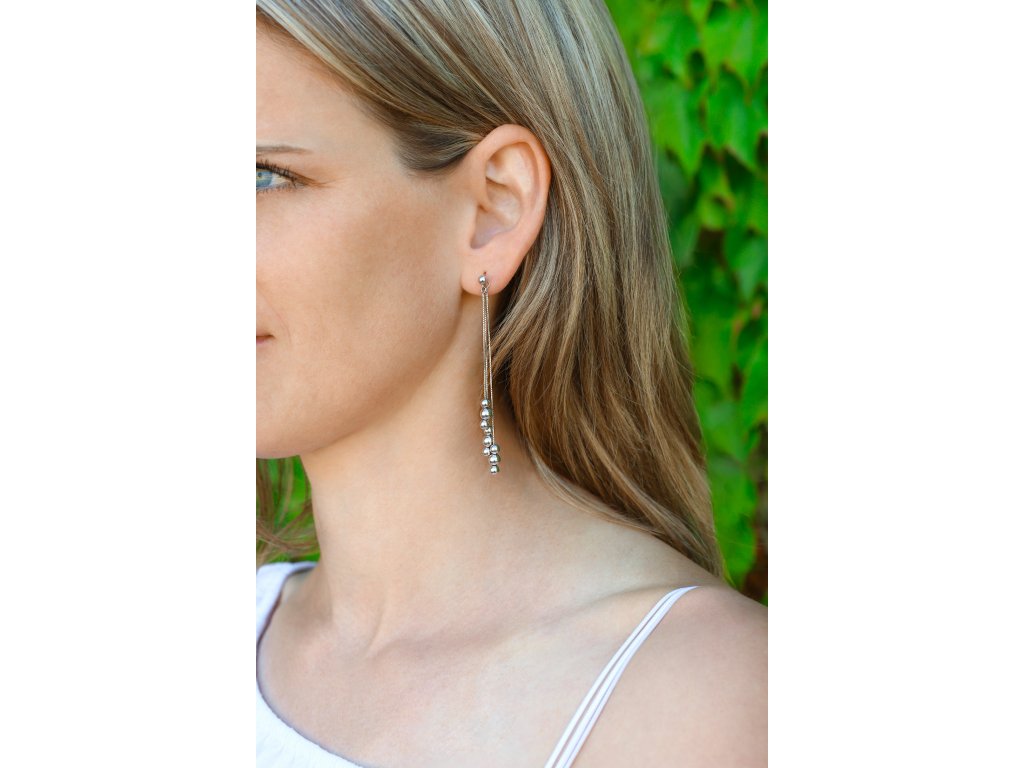 Vyrobené ze stříbra ryzosti 925/1000, tyto náušnice se pohodlně nosí díky zapínání na klasickou puzetku. Ozdobte se slušivými visacími šperky, které jemně podtrhnou vaši ženskost a dodají outfitu stylový a elegantní detail.