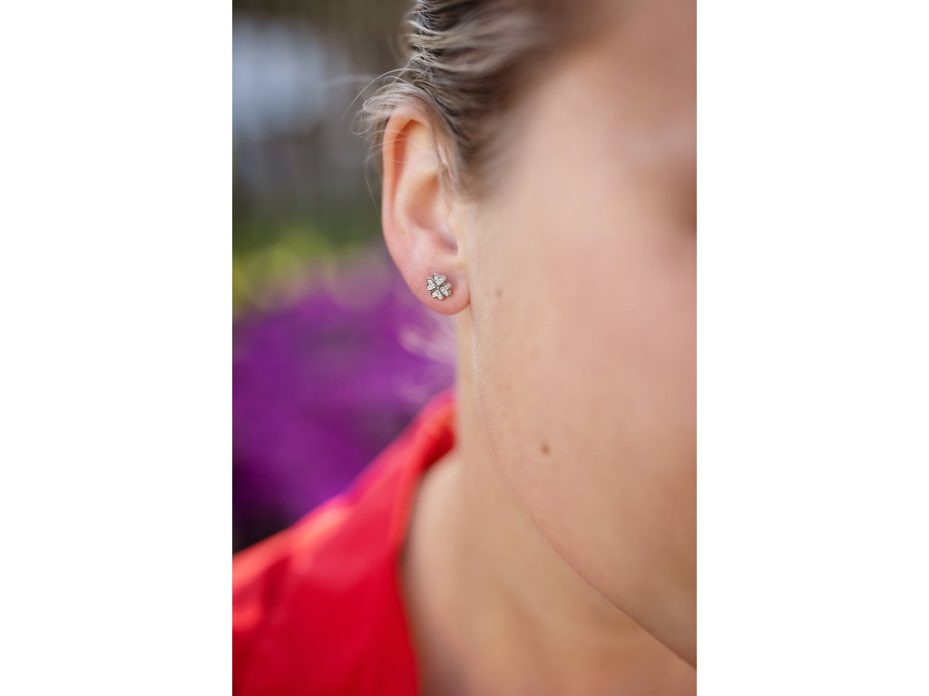 Náušnice jsou zdobené třpytivými čirými zirkony, které jim dodávají elegantní lesk. Díky bezpečnostnímu zapínání na šroubek se pohodlně nosí a nehrozí jejich ztráta. Ozdobte sebe nebo své blízké šperkem, který přináší štěstí na každém kroku.