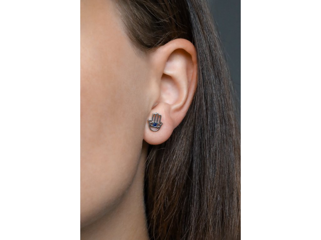 Stříbrné náušnice Hamsa - ruka Fatimy AGUP2242
