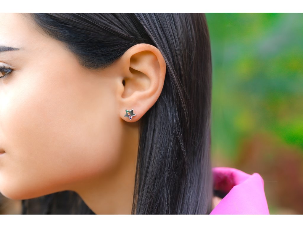 Stříbrné náušnice hvězdičky s barevnými zirkony AGT-E165PC