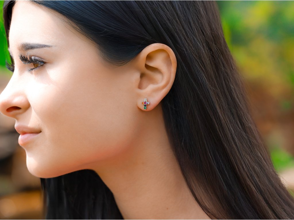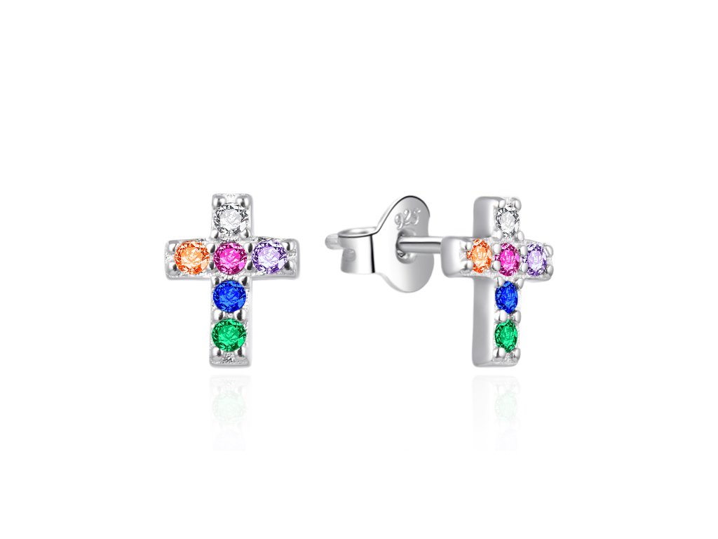 Stříbrné náušnice křížek s barevnými zirkony AGT-E169PC