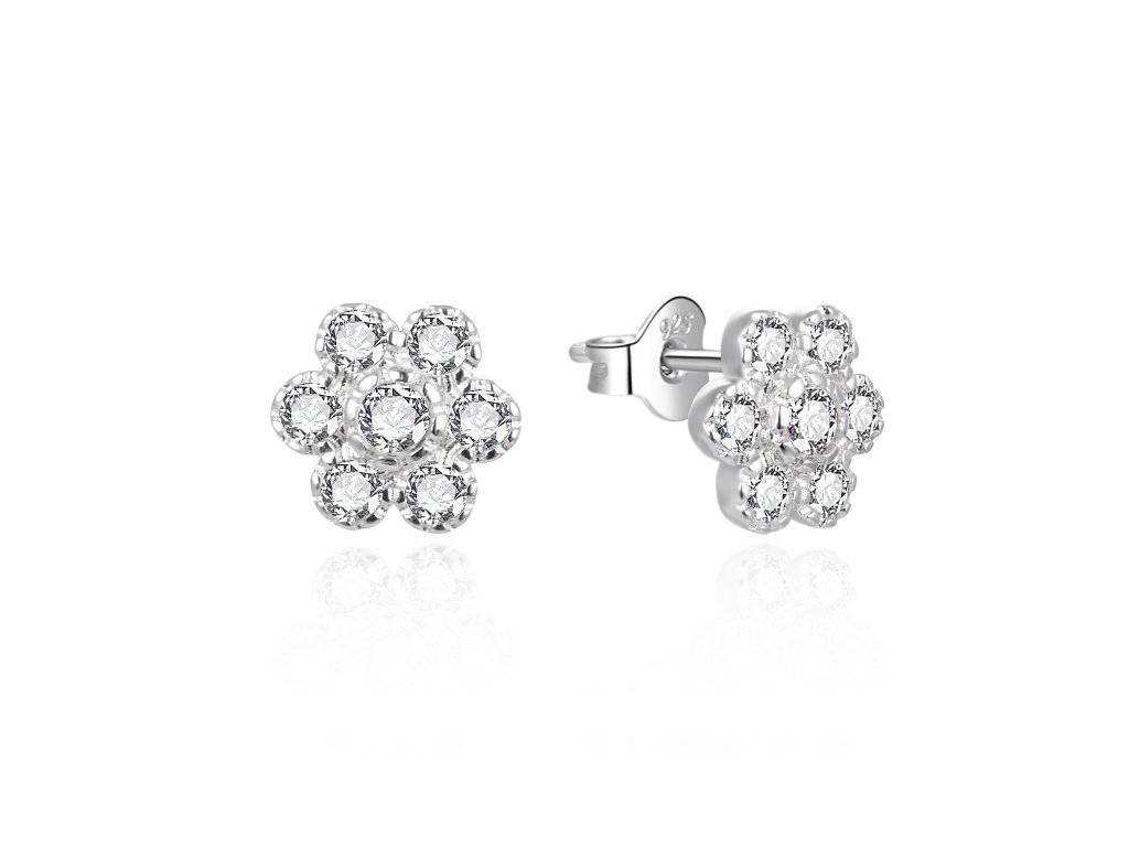 Stříbrné náušnice kytičky s čirými zirkony AGT-E179PW