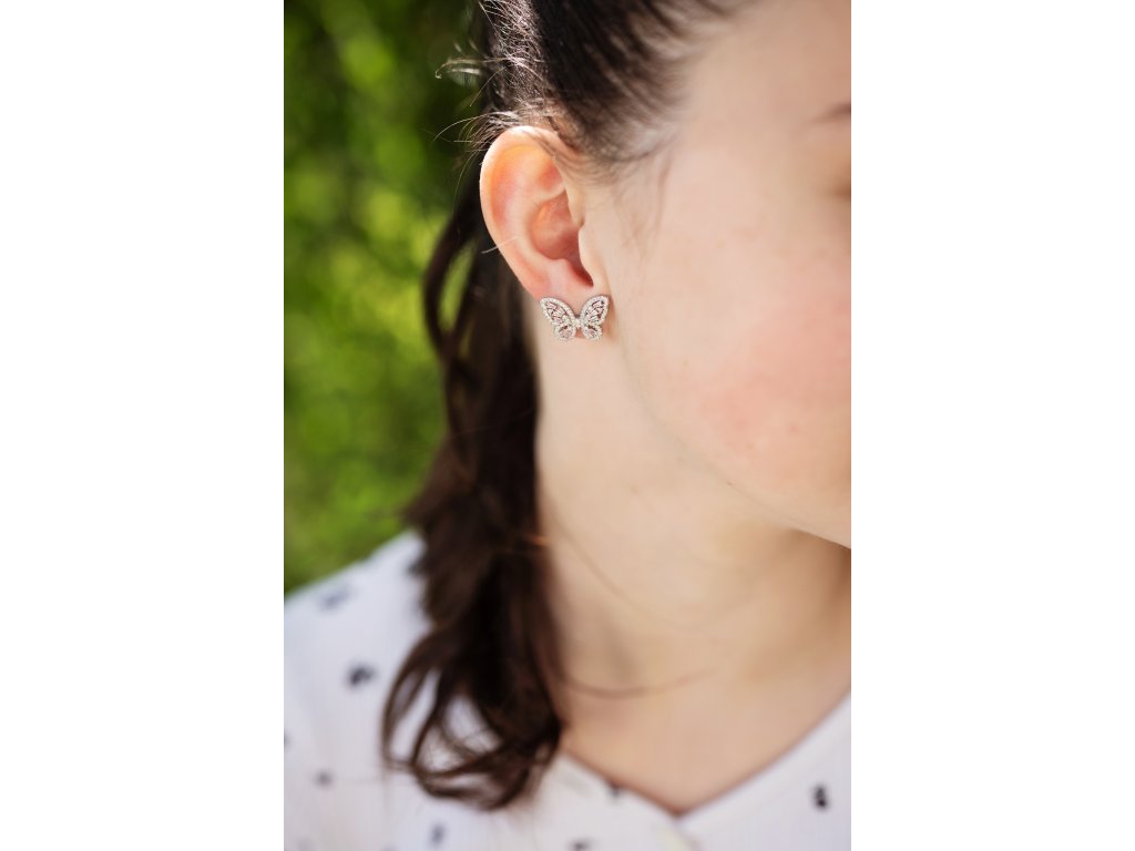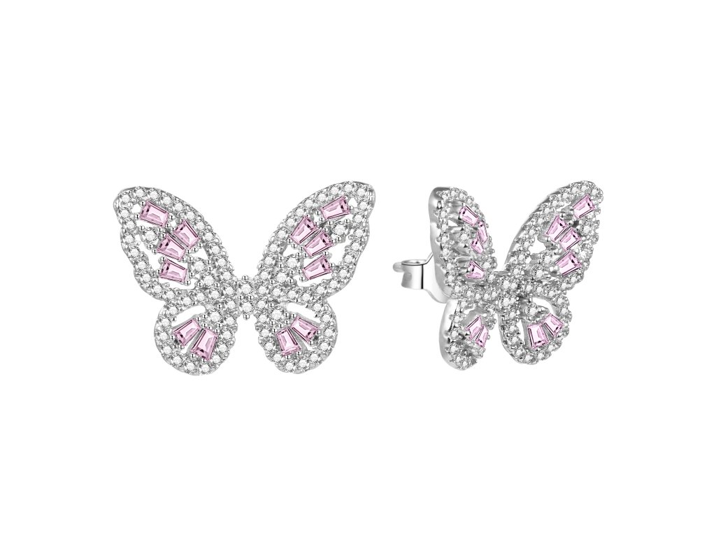 Stříbrné náušnice motýli se zirkony AGUP3094-W/P