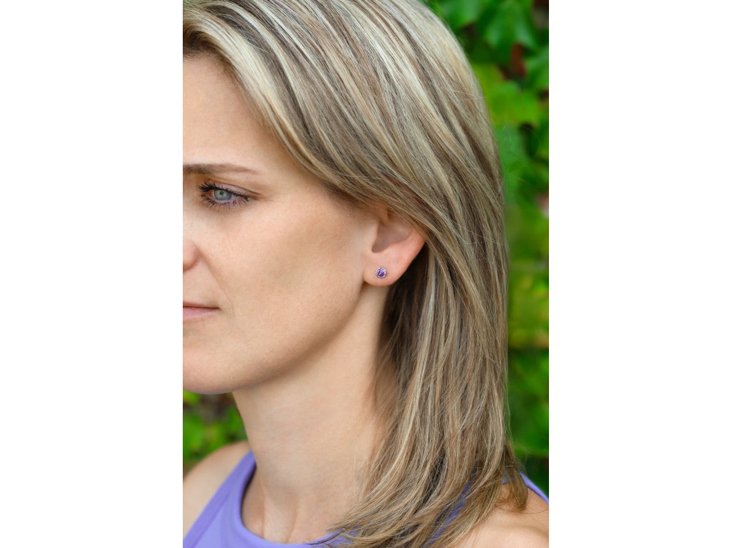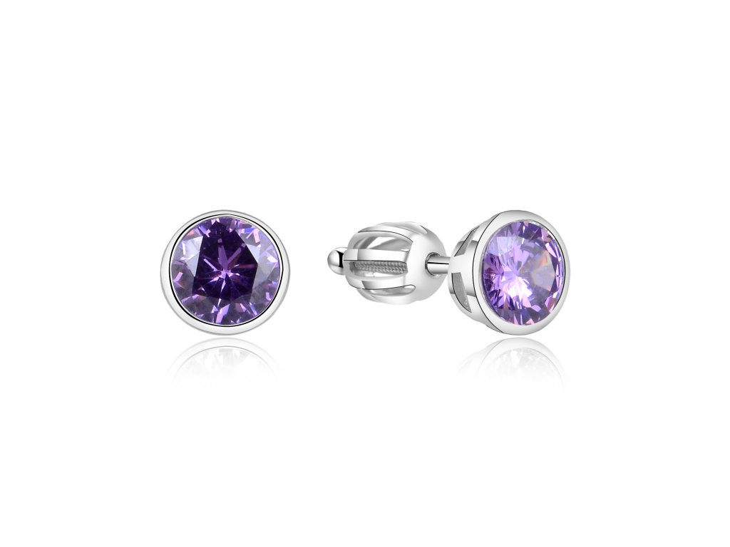 Stříbrné náušnice pecky s fialovým zirkonem AGUP1716S