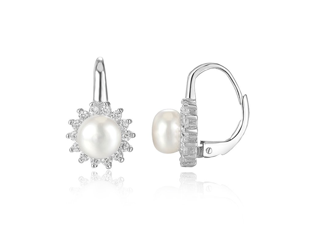 Stříbrné náušnice s čirými zirkony a perlou AGUC1168