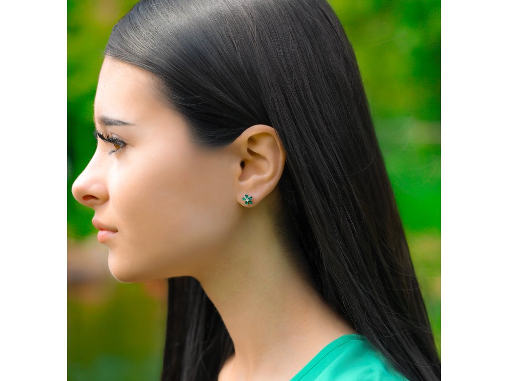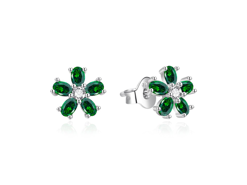Stříbrné náušnice s kytičkami a zelenými zirkony AGT-E243PGR
