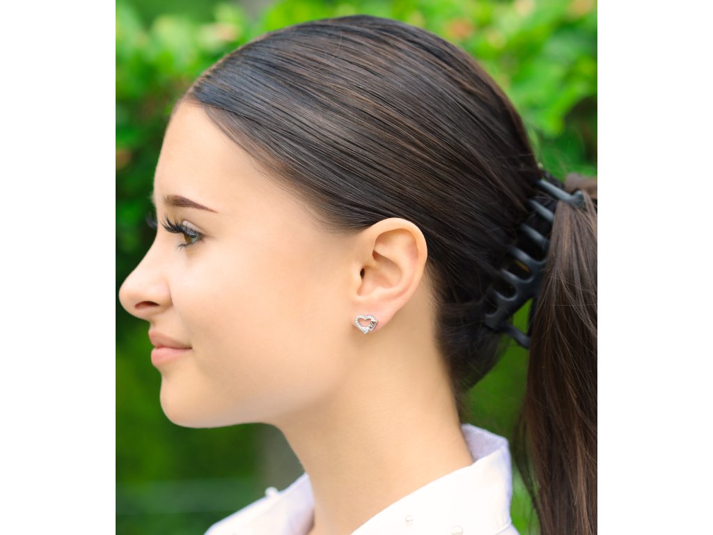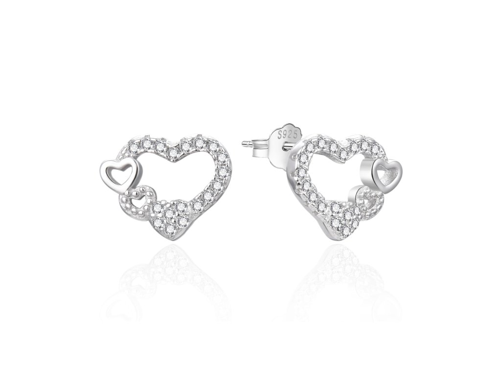 Stříbrné srdíčkové náušnice s čirými zirkony AGT-E236PW