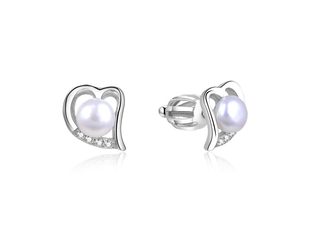 Stříbrné srdíčkové náušnice s pravou perlou AGUP1412PS