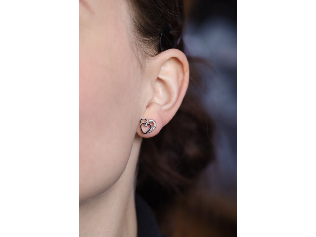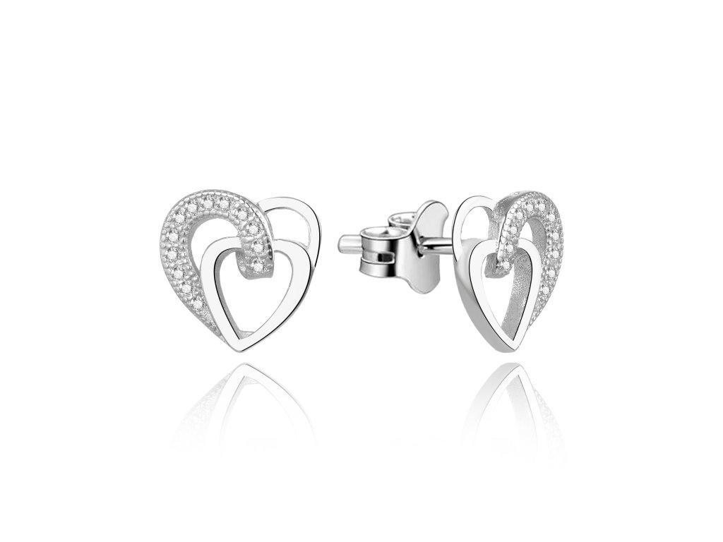 Stříbrné srdíčkové náušnice se zirkony AGUP1527