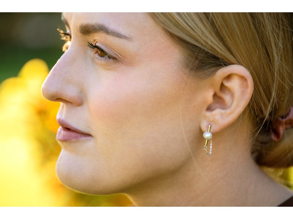 Stříbrné visací náušnice s perlou AGT-E042P-P