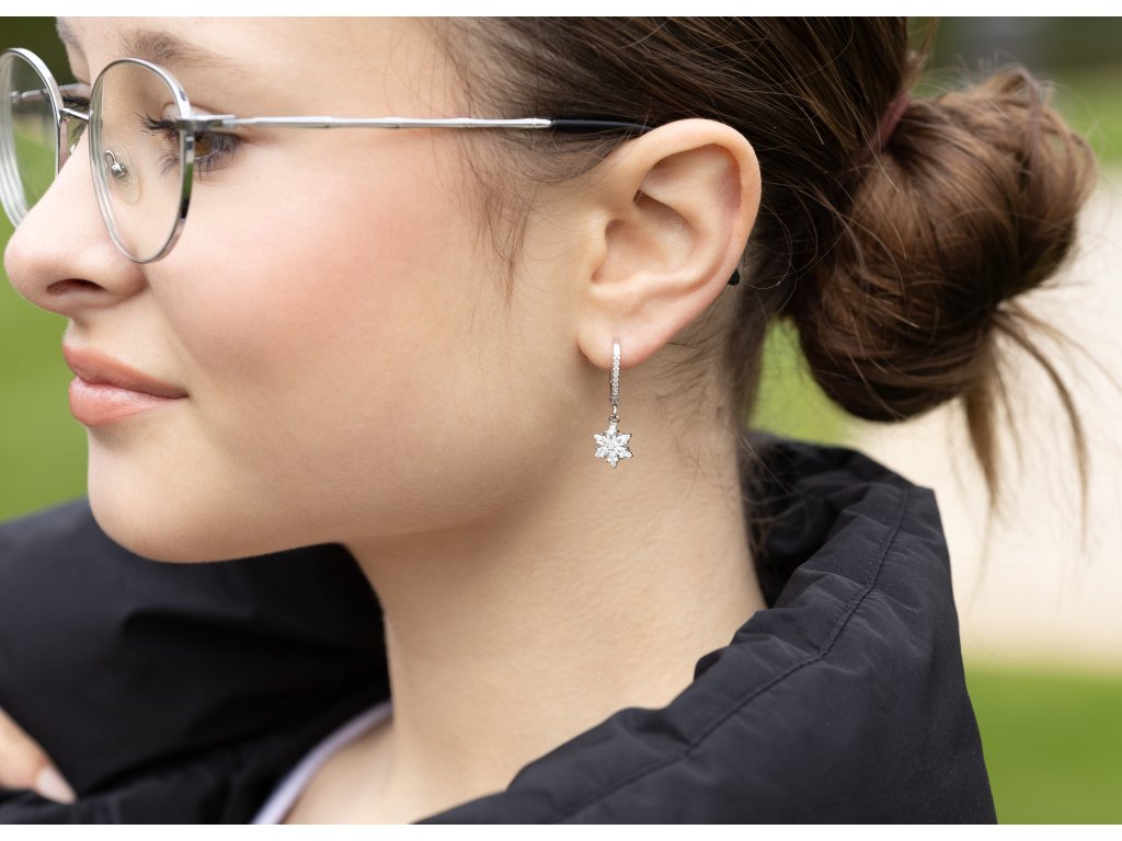 Náušnice jsou vyrobeny z kvalitního stříbra a osazeny precizně broušenými zirkony, které odrážejí světlo a vytvářejí sofistikovaný třpyt. Díky klapkovému zapínání se pohodlně nosí celý den a stávají se ideálním doplňkem pro slavnostní i každodenní příležitosti.