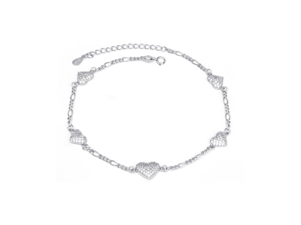 Stříbrný náramek na nohu se srdíčky AGN53/27