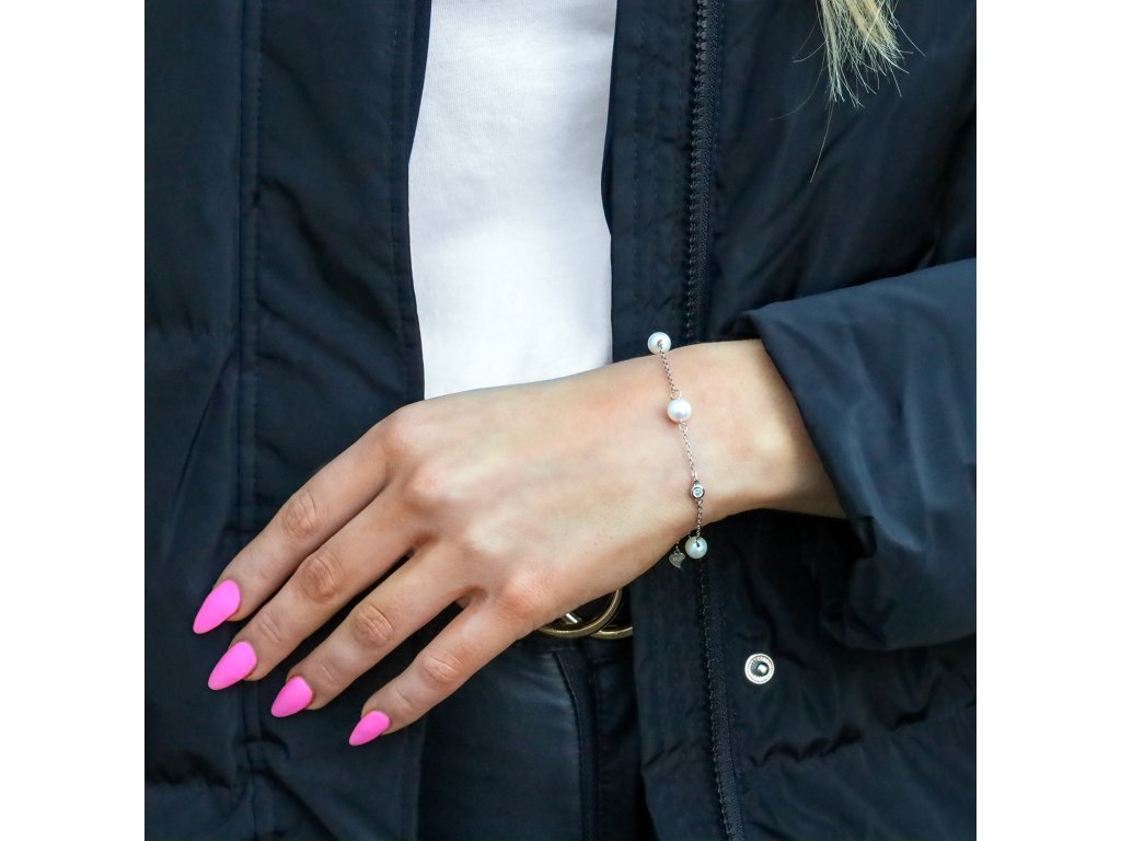 Stříbrný náramek se slakovodními perlami a zirkonem