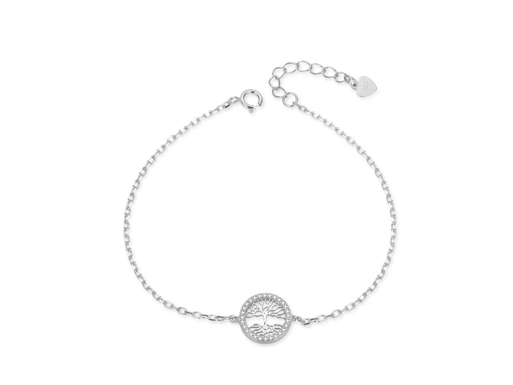 Stříbrný náramek s rhodiovaným povrchem, který chrání šperk a snižuje riziko alergií. Délka náramku 17 cm s možností prodloužení až o 4 cm zajišťuje komfortní nošení a elegantní vzhled. Náramek se stromem života je malý kousek elegance, který dodá outfitu sofistikovaný třpyt a nadčasový styl. Šperk je promyšlený do posledního detailu, aby se dobře nosil, krásně vypadal a vydržel roky.