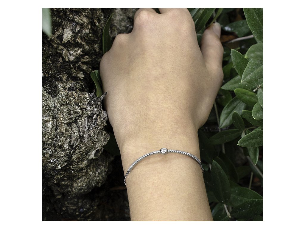 Třpytivý náramek ze stříbra vysoké kvality s rhodiovaným povrchem, který zachovává dlouhotrvající lesk a snižuje alergické reakce. Nastavitelná délka 17 cm s možností prodloužení až o 4 cm a zapínání na karabinu zajišťuje komfortní, bezpečné a flexibilní nošení. Tento náramek je malý, ale výrazný kousek elegance. . Perfektní pro osobní radost i jako dar, který potěší a zanechá dojem.