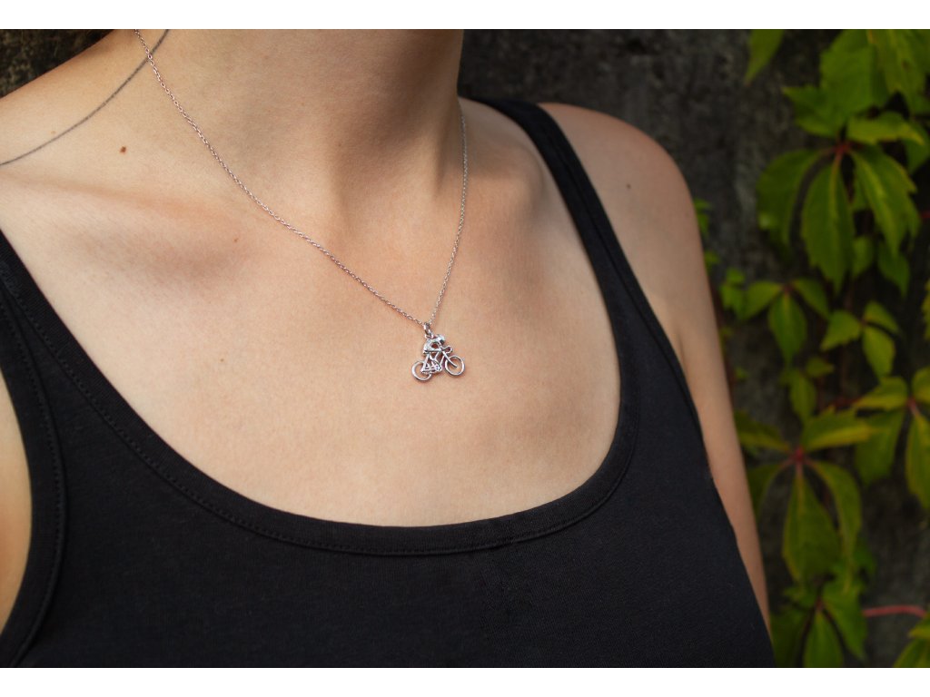Vyrobený z kvalitního stříbra, přívěsek spojuje odolnost s precizním zpracováním. Stylový motiv cyklisty dodává šperku jedinečný charakter a je ideální jako osobní doplněk nebo dárek pro každého, kdo miluje sport a dobrodružství.