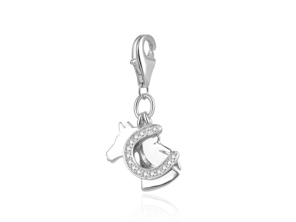 Vyrobený z kvalitního stříbra, přívěsek spojuje odolnost a sofistikovaný vzhled. Motiv koně s podkovou symbolizuje štěstí, sílu a svobodu, zatímco třpytivé zirkony dodávají šperku jemný a zářivý detail. Perfektní volba jako osobní doplněk nebo jako dárek, který vnese do outfitu radost a půvab.