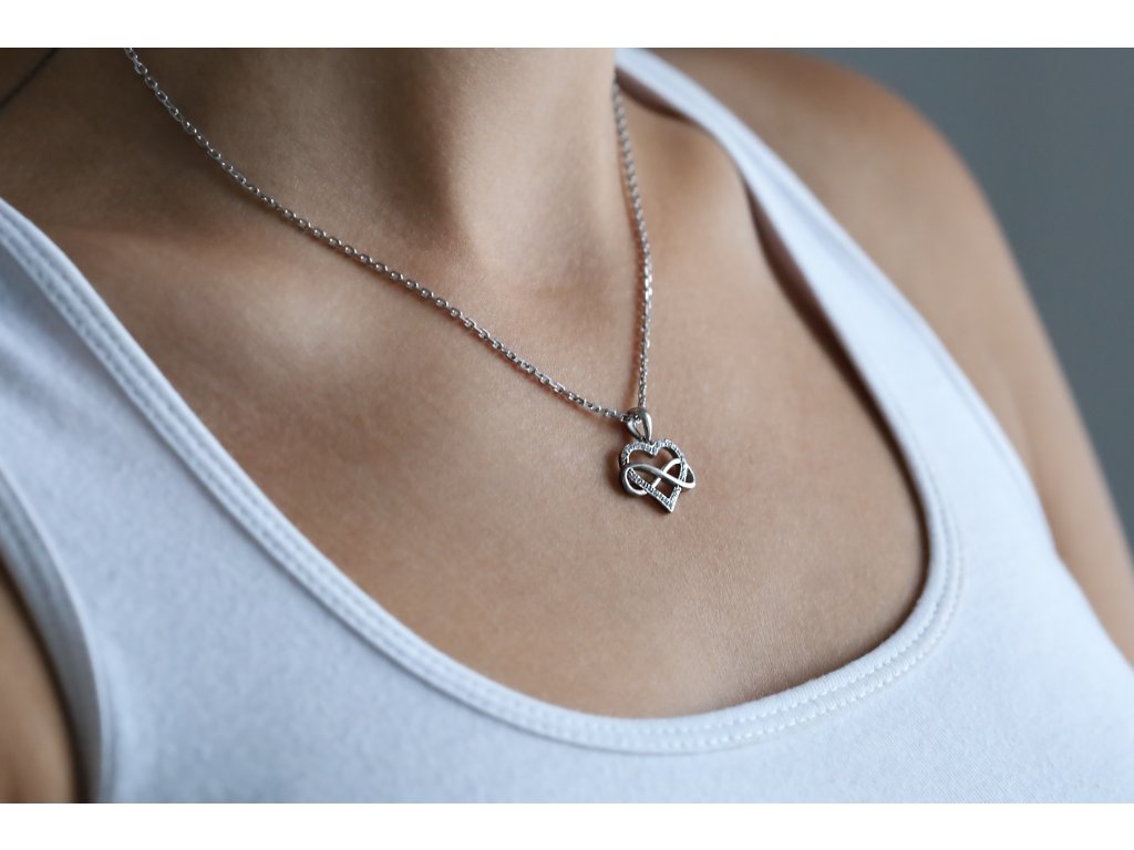 Vyrobený z kvalitního stříbra 925/1000, přívěsek je odolný proti poškození a má dlouhotrvající lesk. Srdce poseté čirými zirkony se oslnivě třpytí při každém pohybu. Symbol nekonečna vyjadřuje věčnou lásku a spojení, což činí šperk ideálním jako osobní talisman nebo jako dárek pro milovanou osobu.