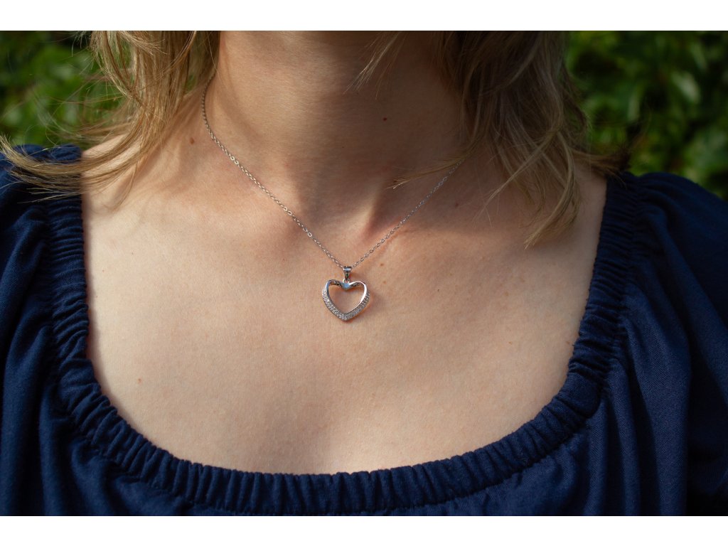 Vyrobený z kvalitního stříbra, přívěsek spojuje nadčasový design s jemným třpytivým efektem. Ideální jako osobní doplněk nebo dárek, který vnese do outfitu něžný třpyt a romantický nádech. Tento šperk je malým symbolem lásky, který potěší každé srdce.