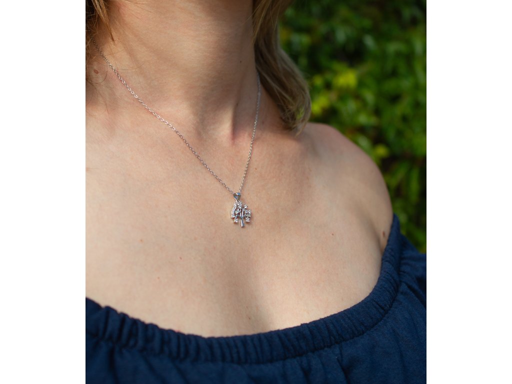Stříbrný přívěsek strom života s kamínky AGH768