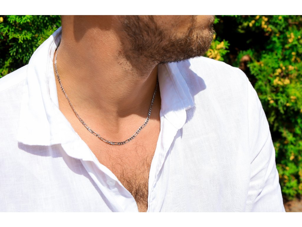 Délka 55 cm zajišťuje pohodlné nošení a perfektní padnutí. Řetízek Figaro dodává outfitu mužný a sofistikovaný detail, který podtrhne osobitý styl každého muže a zároveň zůstává nadčasovým doplňkem vhodným pro různé kombinace šperků.