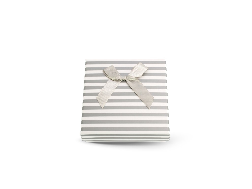 Vyšperkujte svůj dárek k dokonalosti a zabalte jej do této krásné pevné papírové dárkové krabičky, ideální pro uložení setu šperků. Krabička je v elegantní bílé barvě s jemnými šedými pruhy a ozdobena romantickou mašličkou. Uvnitř se nachází měkká bílá poduška, která zajistí bezpečné uložení šperků.
