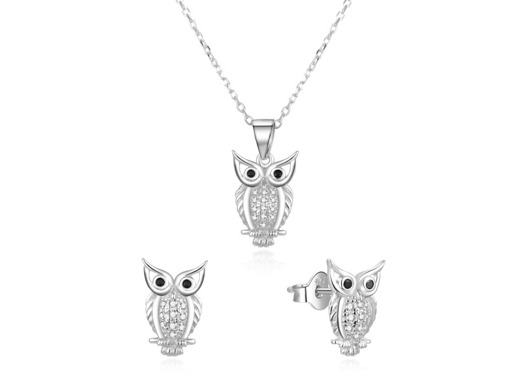 Stylová stříbrná souprava šperků sovičky AGSET61RL