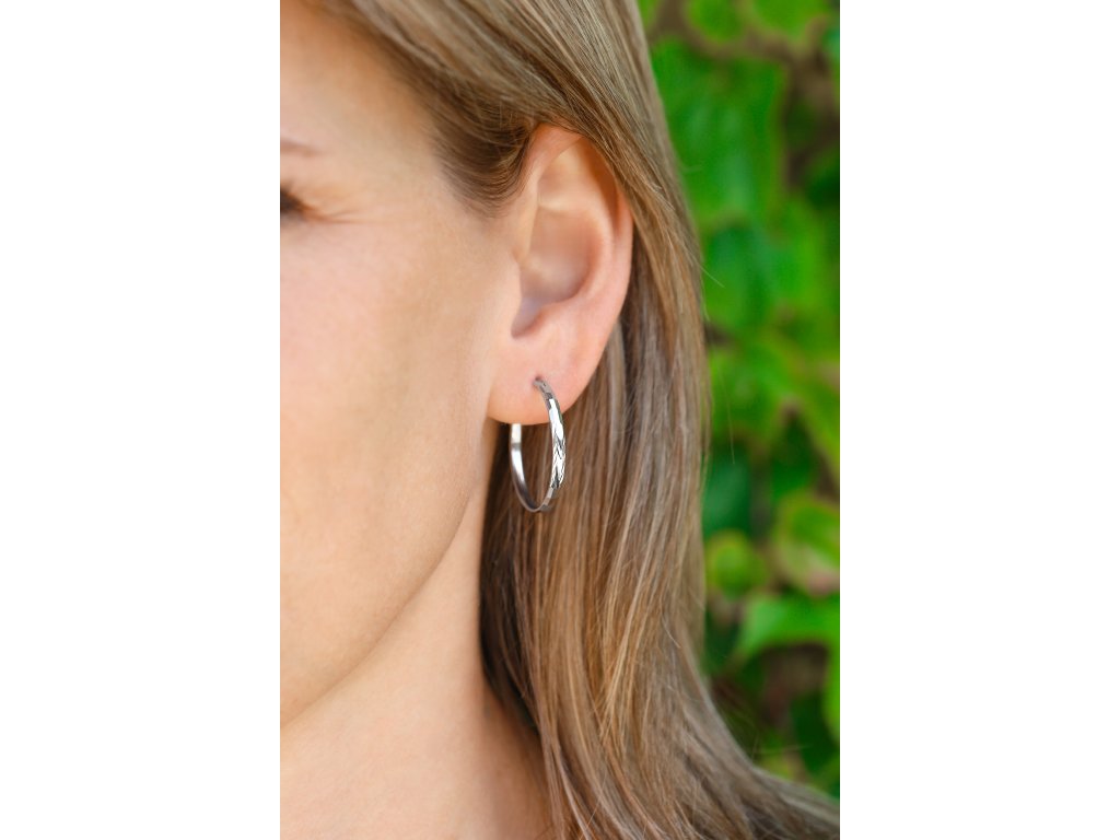 Díky bezpečnostnímu zapínání náušnice pevně drží na uchu a nehrozí jejich ztráta. Vyrobené z vysoce kvalitního stříbra, působí elegantně a univerzálně, ideální pro ženy, které hledají moderní a stylový doplněk, nebo jako dárek, který vnese do outfitu sofistikovaný detail.