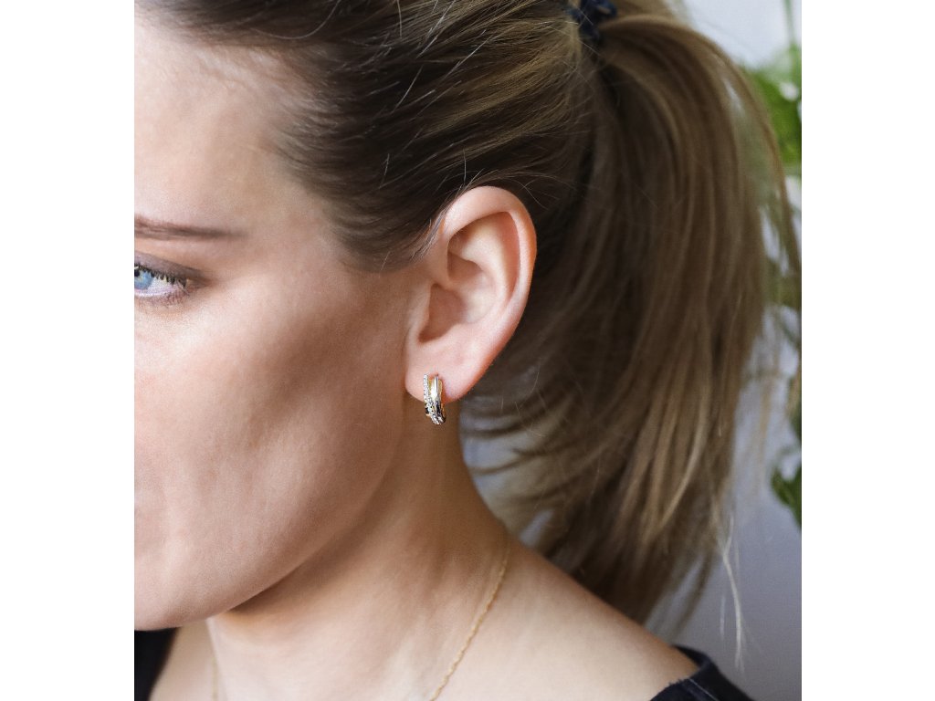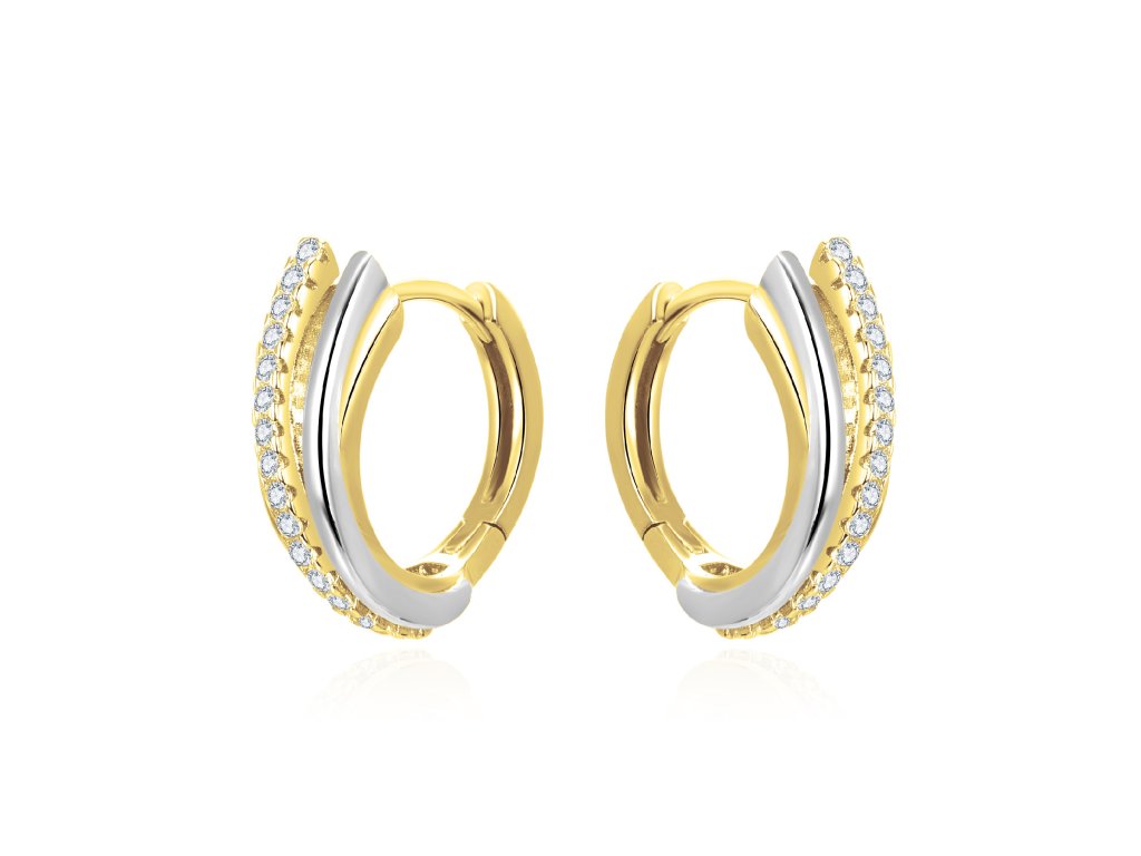 Díky bezpečnostnímu zapínání na kloub náušnice pevně drží na uchu a zajišťují pohodlné nošení. Kombinace pozlaceného a rhodiovaného stříbra spolu s třpytivými zirkony vytváří elegantní a nadčasový šperk, ideální pro ženy, které hledají stylový a třpytivý doplněk, nebo jako dárek, který vnese do outfitu sofistikovaný třpyt a luxusní nádech.