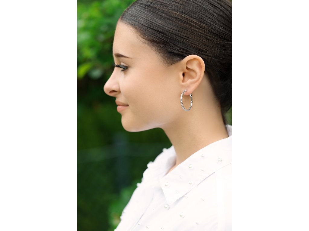 Díky bezpečnostnímu zapínání na kloub s pojistkou náušnice pevně drží a pohodlně se nosí. Tento třpytivý kruhový šperk podtrhne vaši přirozenou krásu, doplní outfit a stane se oblíbenou součástí šperkovnice, ideální pro každodenní nošení i slavnostní příležitosti.