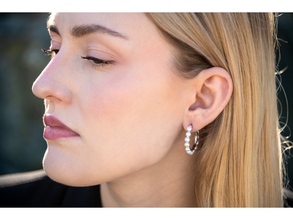 Díky zapínání na klasickou puzetku náušnice bezpečně drží a pohodlně se nosí. Tyto perlové kruhové náušnice podtrhnou vaši přirozenou krásu, elegantně doplní outfit a stanou se oblíbenou součástí šperkovnice, vhodné pro každodenní nošení i speciální příležitosti.
