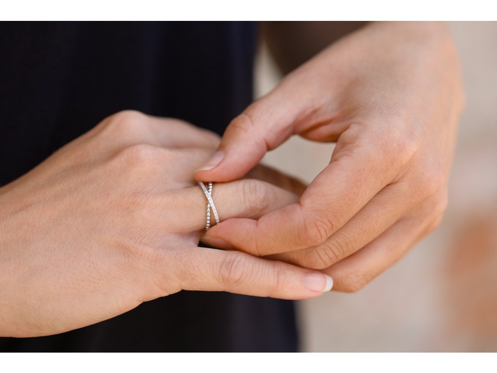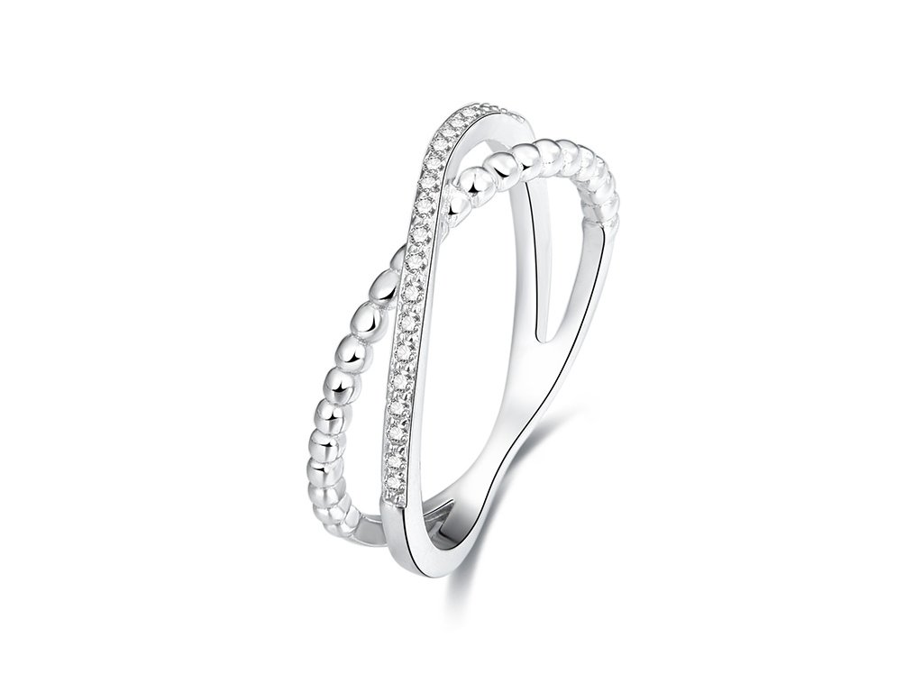 Stylový dvojitý prsten se zirkony AGG145
