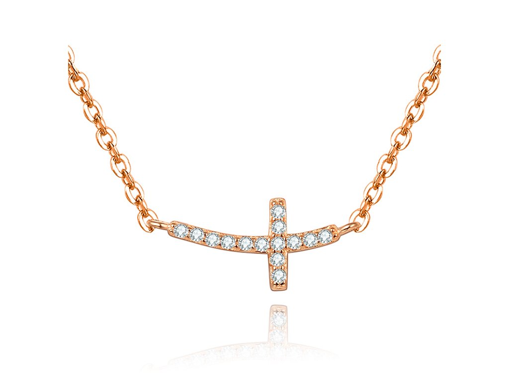 Stylový růžově pozlacený stříbrný náhrdelník s křížkem AGS546/47-ROSE