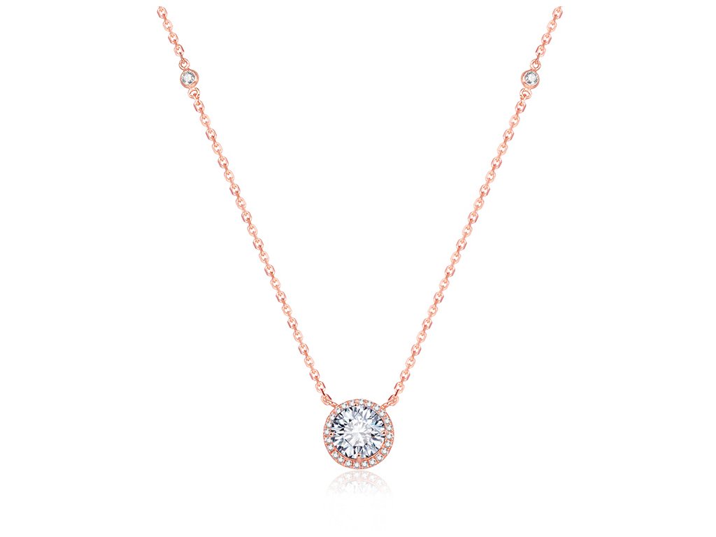 Stylový růžově pozlacený stříbrný náhrdelník se zirkony AGS1135/47-ROSE