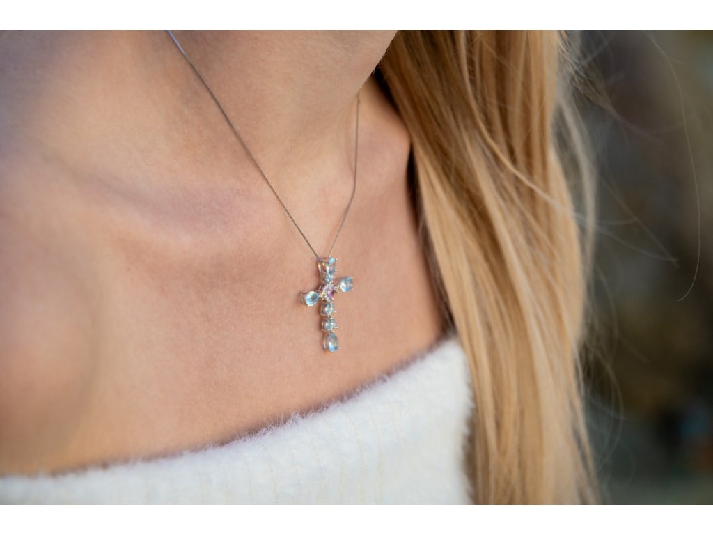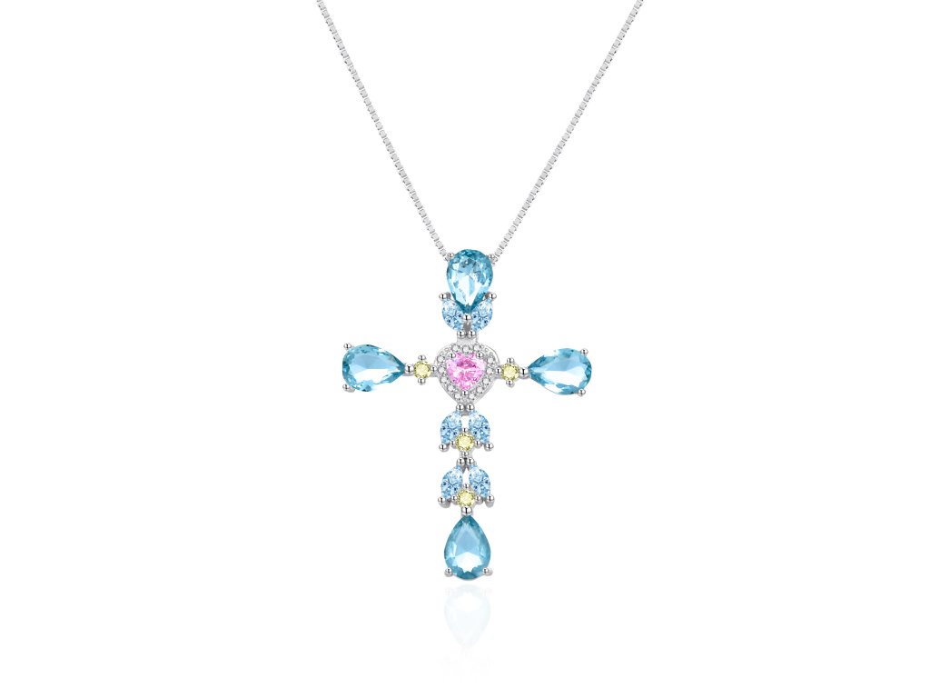 Stylový stříbrný náhrdelník s barevným křížkem AGT-N010BL