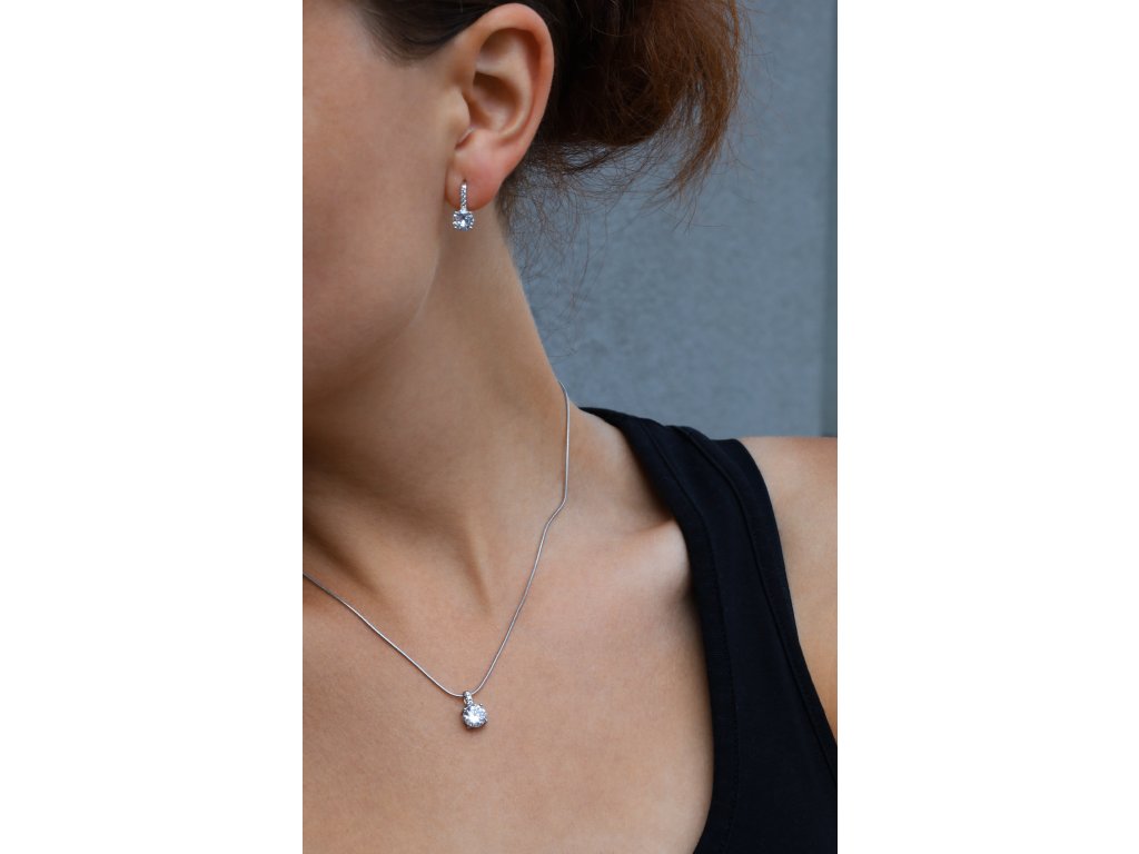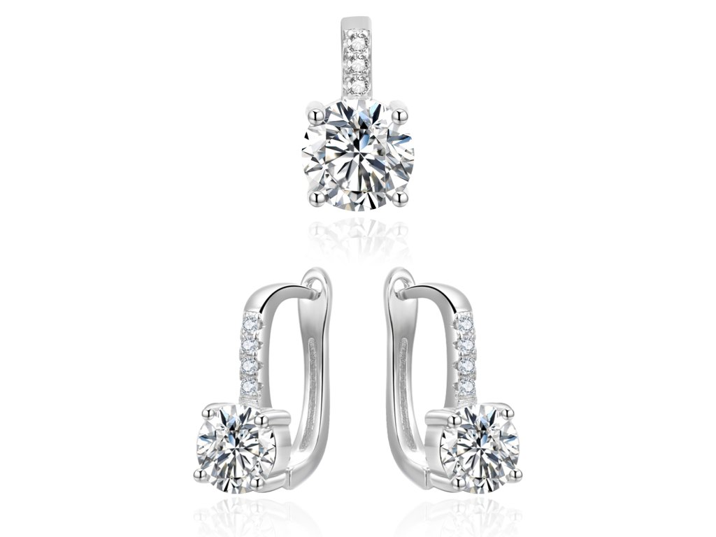 Náušnice jsou opatřeny bezpečným patentovým zapínáním, které zaručuje spolehlivé držení na uchu a snadné nasazování i sundávání. Přívěsek je lehký a elegantní, takže se pohodlně nosí po celý den. Díky kvalitnímu stříbru a precizně osazeným zirkonům si souprava zachová svůj třpyt a krásu i po dlouhodobém nošení. Tento nadčasový set je perfektní pro ženy, které chtějí doplněk vhodný pro každodenní nošení, slavnostní okamžiky nebo jako výjimečný dárek plný elegance.