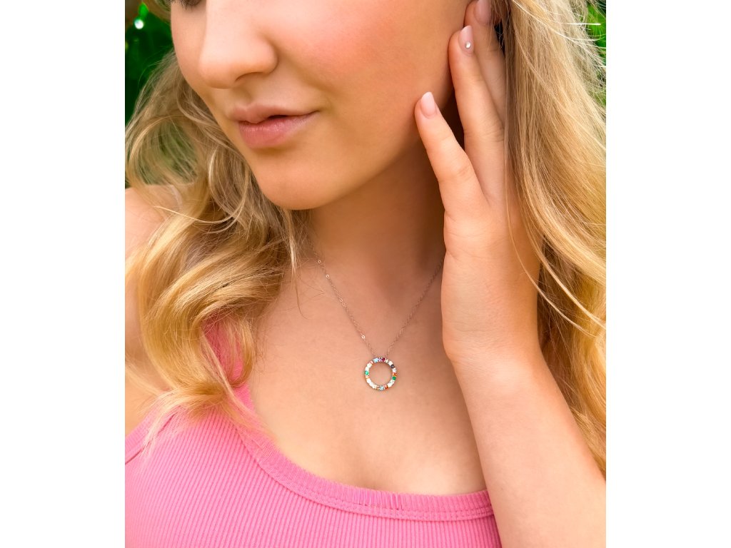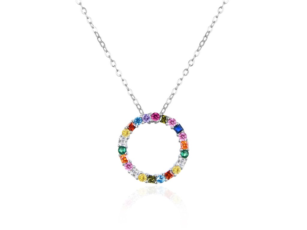 Třpytivý stříbrný náhrdelník s barevným kolečkem AGT-N032C