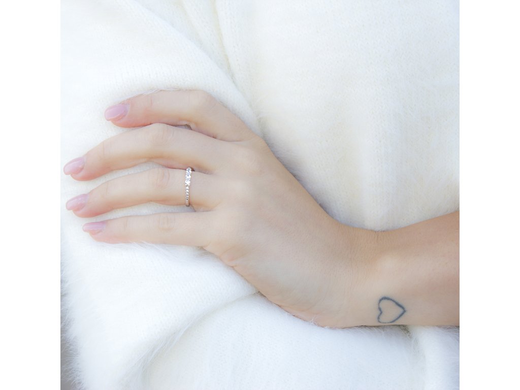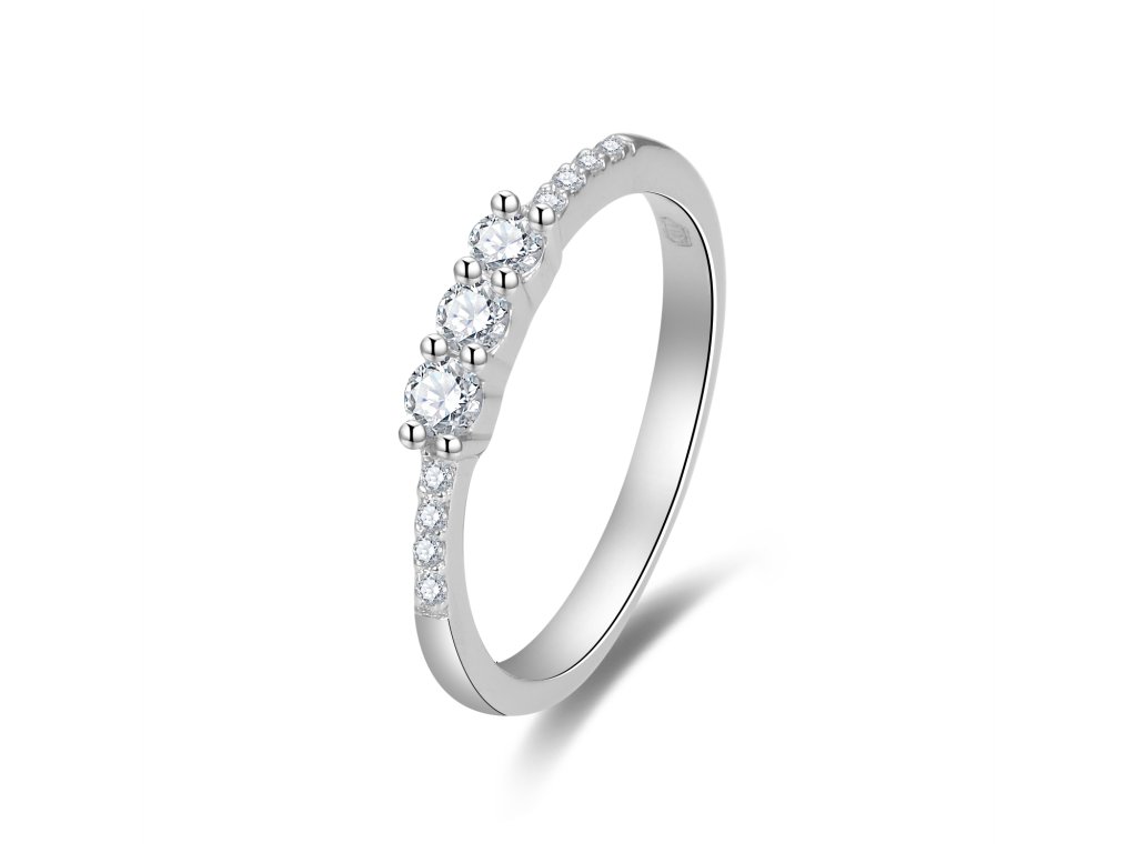 Třpytivý stříbrný prsten se zirkony AGG464