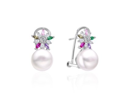 Okouzlující stříbrné náušnice se zirkony a pravou perlou Tyto náušnice jsou vyrobené ze stříbra a na první pohled zaujmou třpytem čirých zirkonů. Půvabné sladkovodní perly...