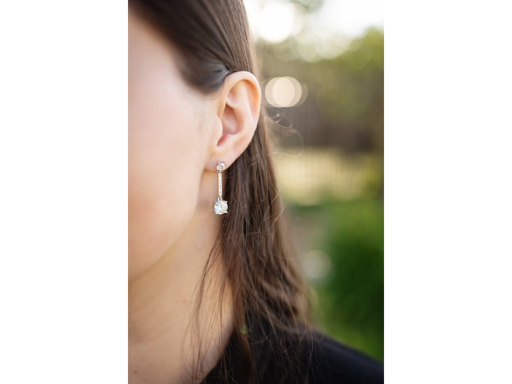 Díky pohodlnému bezpečnostnímu zapínání na puzetku náušnice pevně drží na uchu a zajišťují komfortní nošení. Jemný a třpytivý design s čirými zirkony vytváří elegantní a univerzální doplněk, který se hodí pro ženy hledající moderní a sofistikovaný šperk, nebo jako dárek, který vnese do outfitu třpyt a jemný šarm.