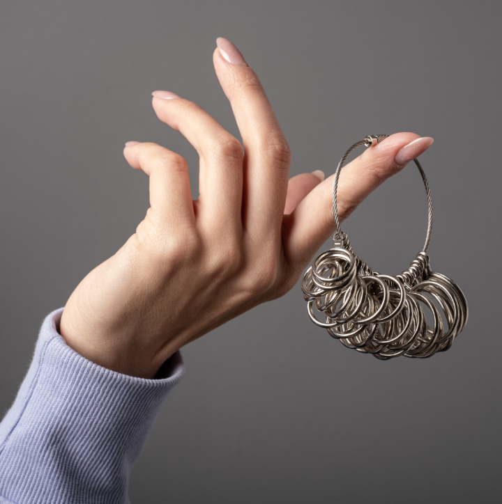 Pokud chcete mít naprostou jistotu, že vám nový prsten perfektně padne, svěřte se do rukou profesionálů. Používají speciální měřicí kroužky nebo plastové měřiče, které spolehlivě určí velikost vašeho prstu – rychle, přesně a bez zbytečných pochybností.